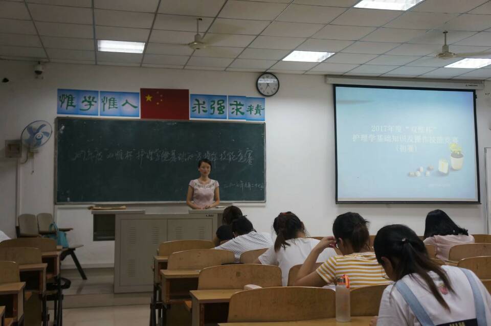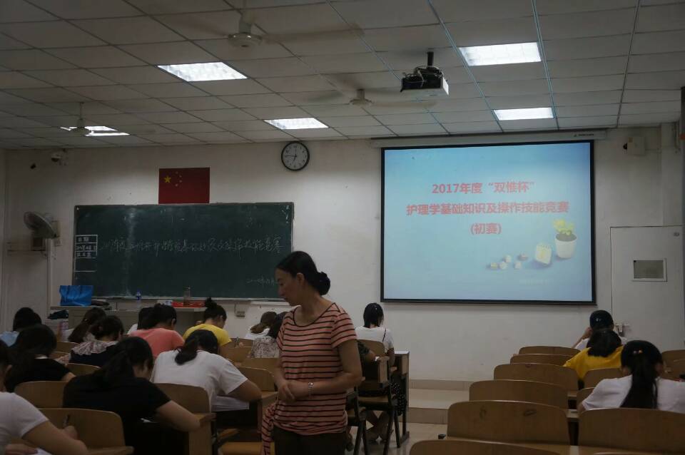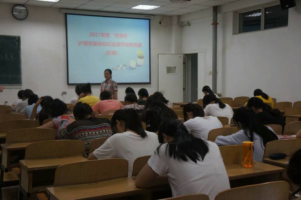 9月27日晚护理学院第六届“双惟杯”护理学基础知识及操作技能竞赛初赛在劝学楼举行。