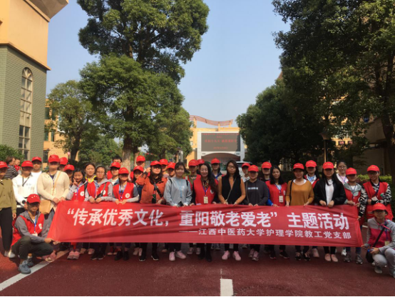时逢重阳佳节之日,为弘扬中华民族敬老爱老的传统美德,2017年10月28日上午八点半,护理学院教师党支部、学生党支部联合江西中医药大学晨曦慈善义工团来到中华情老年公寓与公寓的全体员工一起齐心举办了“九九重阳节,浓浓夕阳情”主题活动。