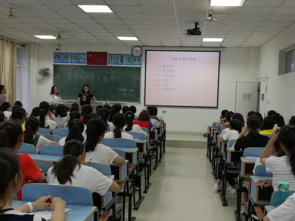 9月24日晚上,2017级专科护理班兼职班主任李成老师组织新生进行专升本主题教育班会。教育内容主要围绕3方面展开:什么是专升本考试?(WHAT)为什么参加专升本考试?(WHY)如何准备专升本考试?(WHO)同时,特别邀请2名2015级专升本学生为新生讲授学习经历和考试经历。班会上,专科护理新生踊跃发言提问,反响热烈。