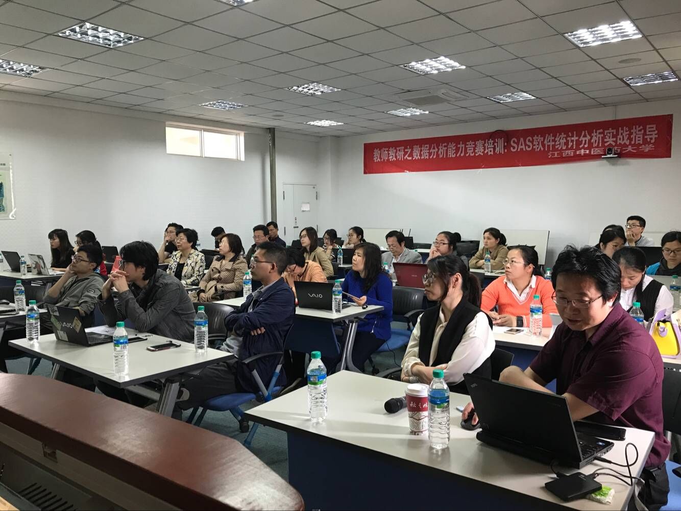 在培训中,查青林教授向大家介绍了SAS数据、程序及语句,进行了现场演示。查教授还就自己的使用体会与教师们进行了分享交流。本次培训活动是为提高教师的数据分析能力而准备,大家参与度高,纷纷表示受益匪浅,相信一定会在接下来的教学研究中进行具体运用,为学校的教学发展贡献自己的一份力量。